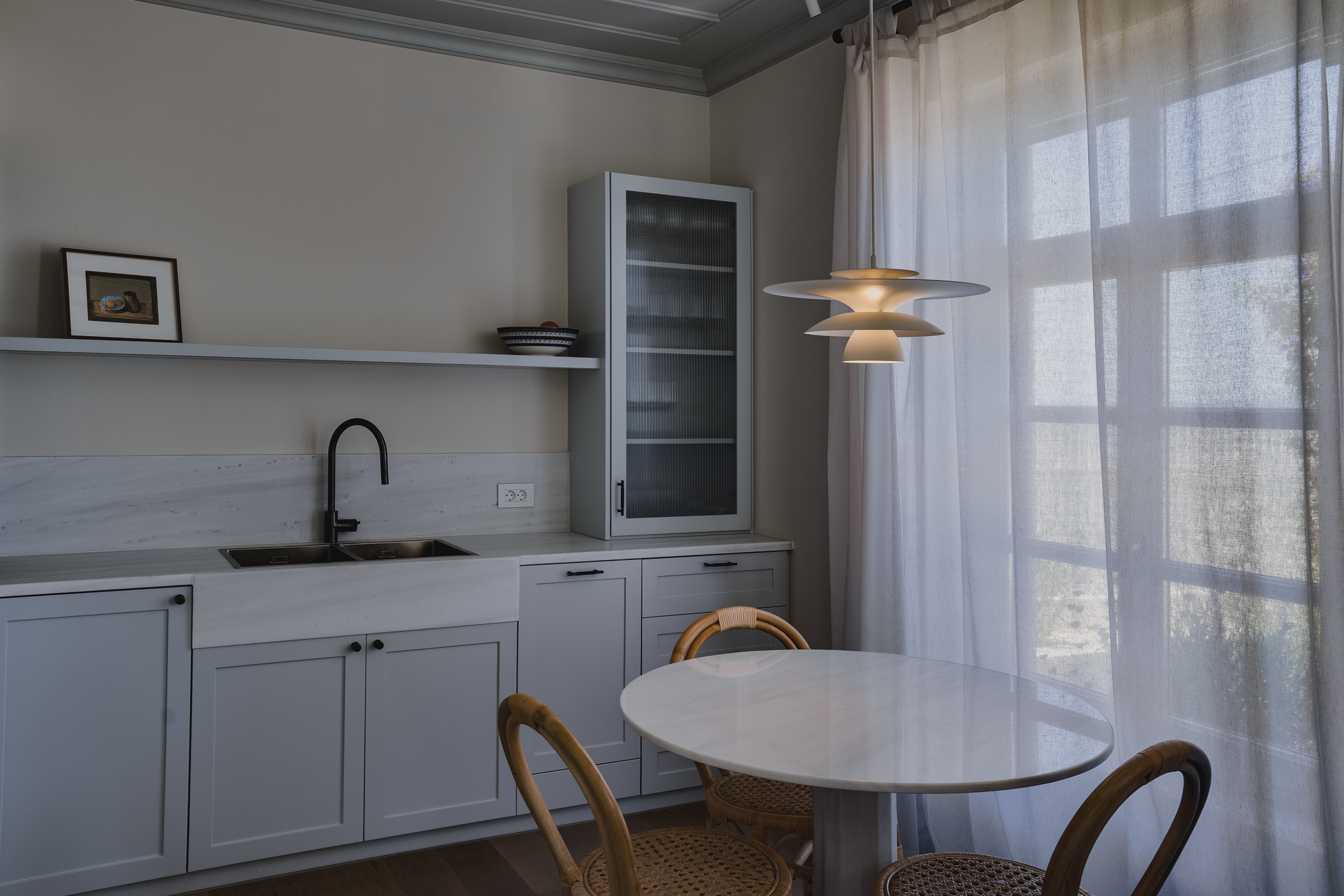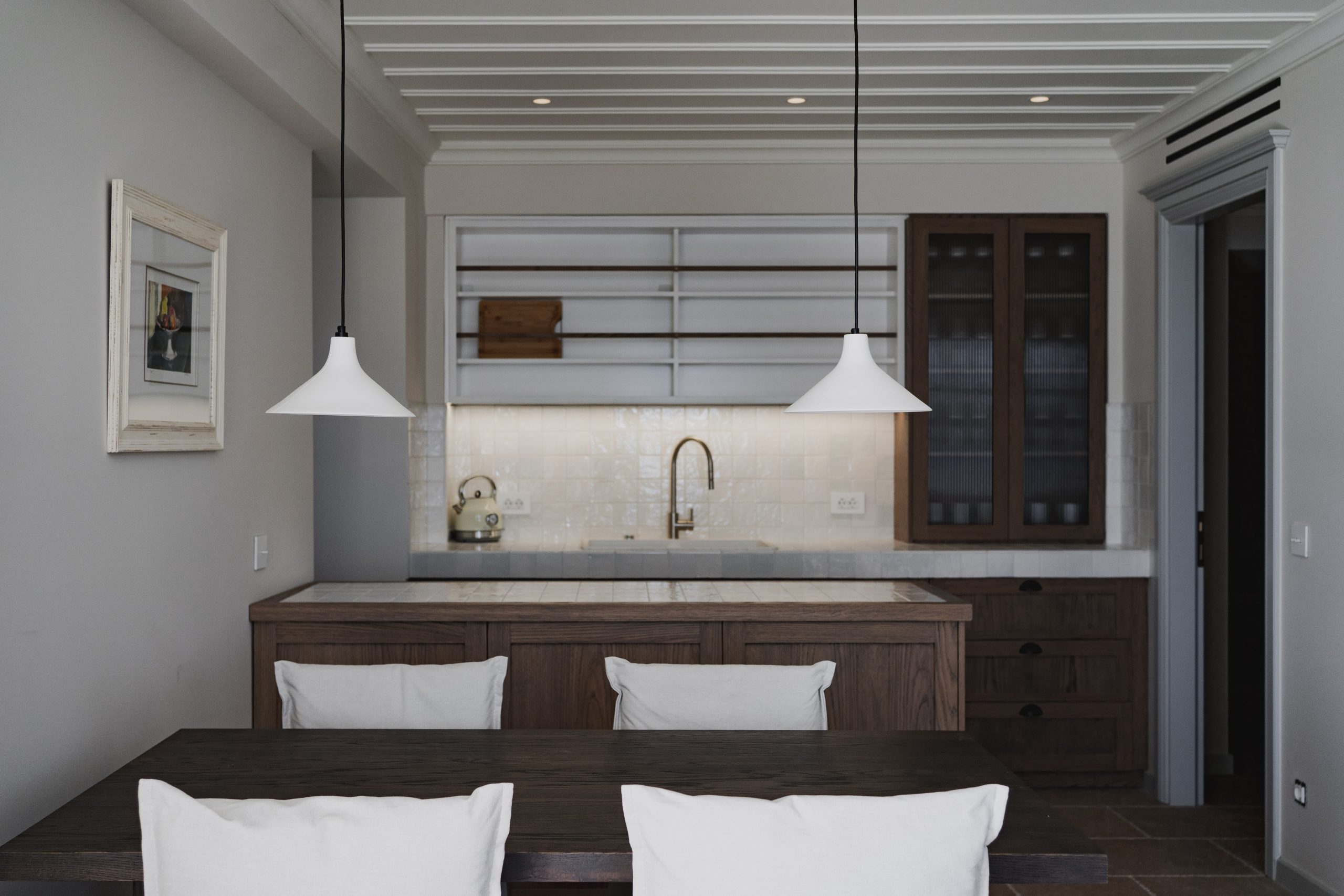 This house in Spetses was designed in the style of the old sea masters’ houses that once dominated the island, reflecting its rich history. Its dimensions and proportions align with those of surrounding buildings, allowing it to integrate harmoniously into the existing landscape. The wooden interiors achieve a balance between sophistication and modernity, while the traditional wooden windows tell a story that spans a thousand years.